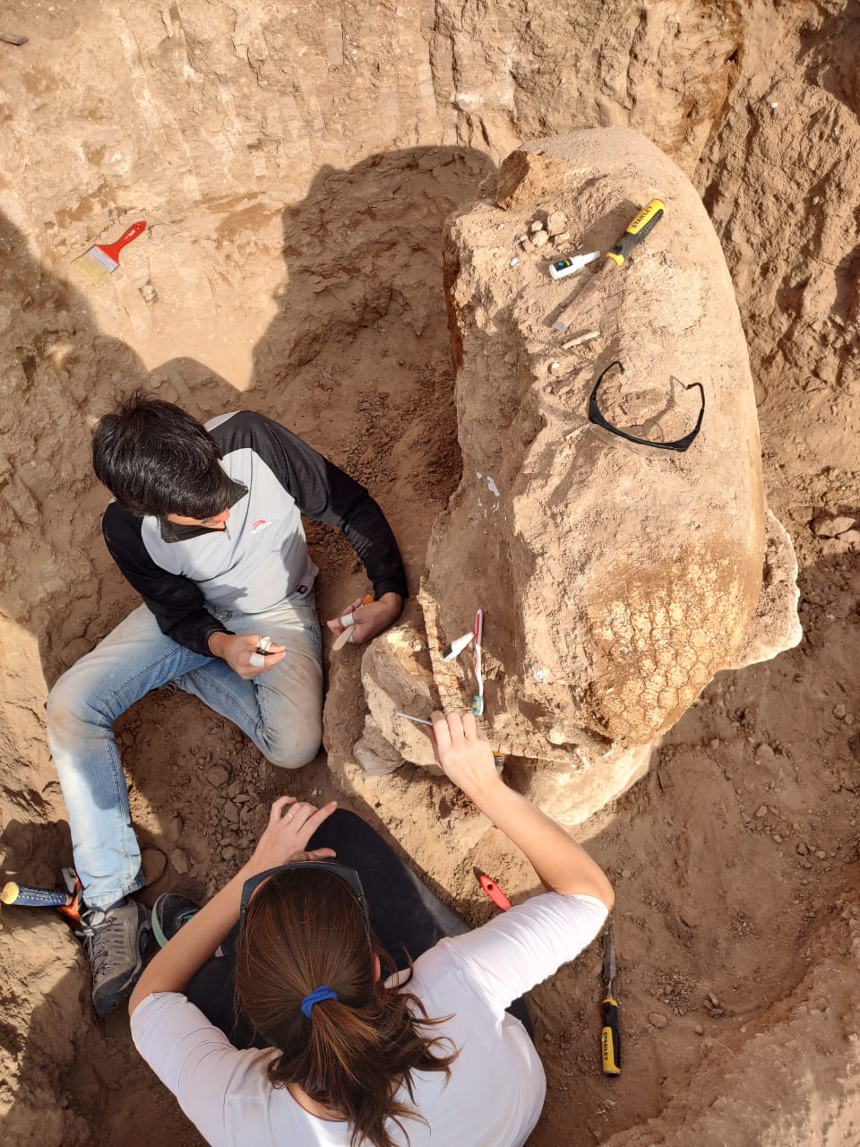 Los trabajos de extracción demandaron una logística importante coordinada por Wanda Marín, directora de Gestión Ambiental, que involucró distintas dependencias de la comuna con el uso de maquinaria pesada. La situación de peligro que ofrecía el lugar del hallazgo demandó la construcción de una rampa y plataformas, que demoraron una semana. Eliminado el peligro las tareas de rescate del equipo de paleontología del museo Scaglia, comprendido por Victoria Sarasa, Fernando Scaglia y Matías Taglioretti, comenzaron el 25 de abril y se extendieron hasta ayer, también con la participación de Dario Porrini y Paola Lamacchia del mismo museo, estudiantes de la Tecnicatura Superior en Paleontología de Miramar y el vecino que hizo el hallazgo, Oscar Martín, como invitado especial.La pieza principal está representada por el caparazón dorsal de un gliptodonte, al cual se suman restos del estuche caudal, anillos caudales, mandíbula, vértebras y costillas. El caparazón se encontraba recostado sobre uno de sus laterales, posición que no permite el vaciado de sedimento del interior de la coraza, por lo cual el bochón final tiene potencial de contener más restos en su interior que ayudarán a determinar con mayor precisión la especie recuperada. En cuanto a la edad se estima Pleistoceno inferior a medio, esto es 2.5 a 1 millón de años atrás. Este animal se encontró en el interior de su antigua madriguera, una paleocueva de 1.1 metros de diámetro, razón por la cual es más difícil determinar su edad relativa, ya que las cuevas se emplazan en estratos más antiguos. Durante las tareas de excavación se hallaron y extrajeron restos de otras dos especies de gliptodontes junto con restos de roedores que permitirán completar aún más el conocimiento de la fauna prehistórica de Balcarce y la zona.Estos nuevos hallazgos paleontológicos, sumado a las islas de biodiversidad que representan las sierras de Balcarce, entusiasman a la gestión municipal, con la creación de un Museo de Ciencias Naturales. Los restos recuperados permanecerán en Balcarce donde serán preparados y curados a la vista de las personas que visiten el Geoparque Pun Antü.