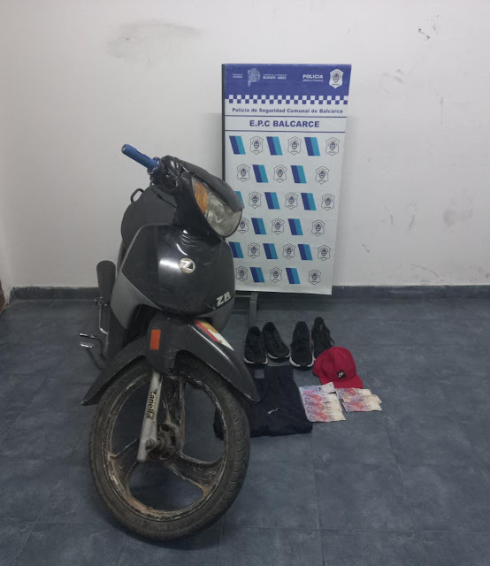 En dicha vivienda se procedió al secuestro de prendas de vestir -utilizadas al momento de cometer el ilícito-, una motocicleta Zanella ZB 110cc y dinero en efectivo.